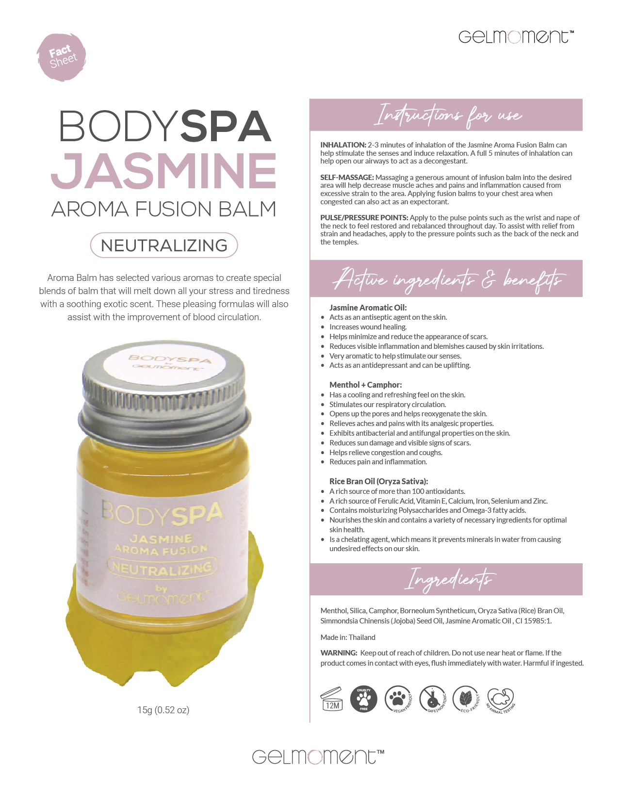 Jasmine Aroma Balm has selected various aromas to create special blends of balm that will melt down all your stress and tiredness with a soothing exotic scent. These pleasing formulas will also help improve your blood circulation.